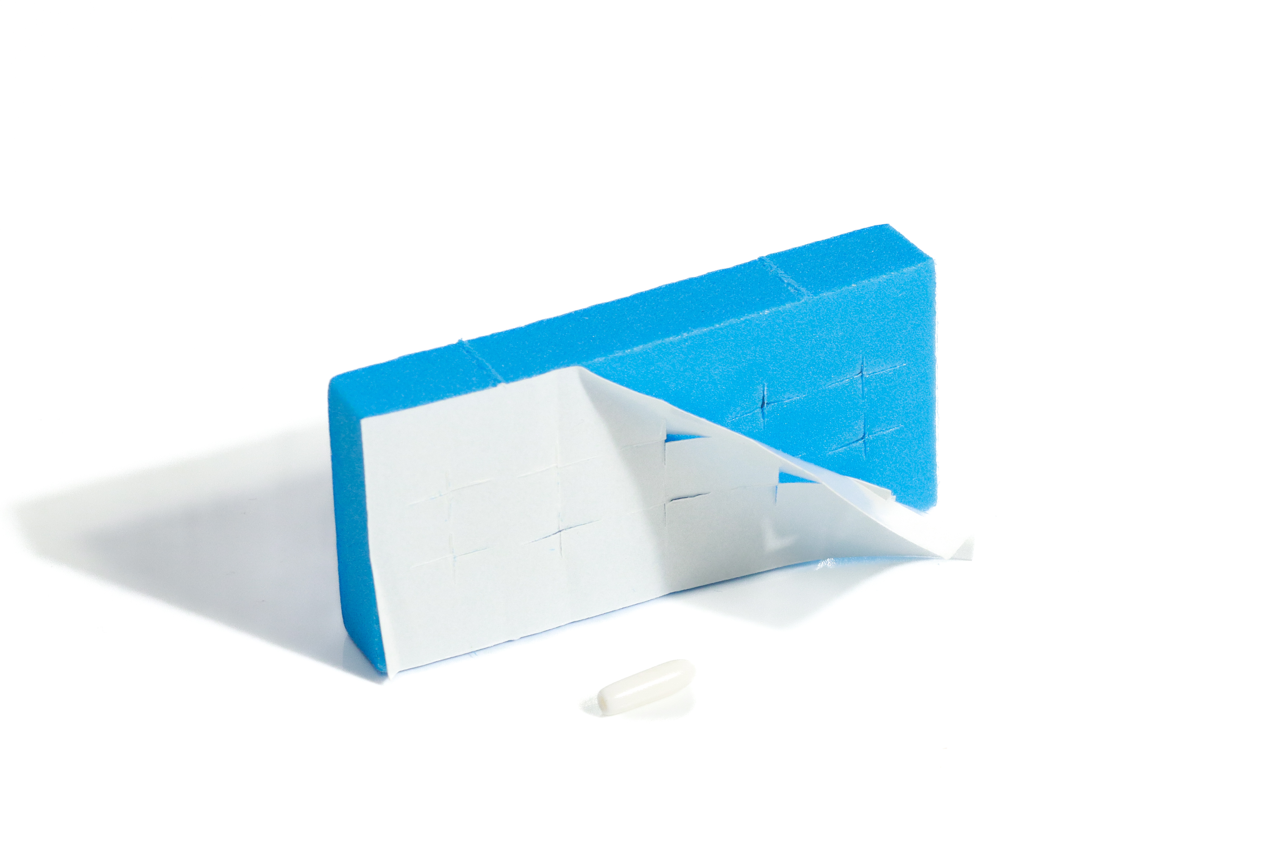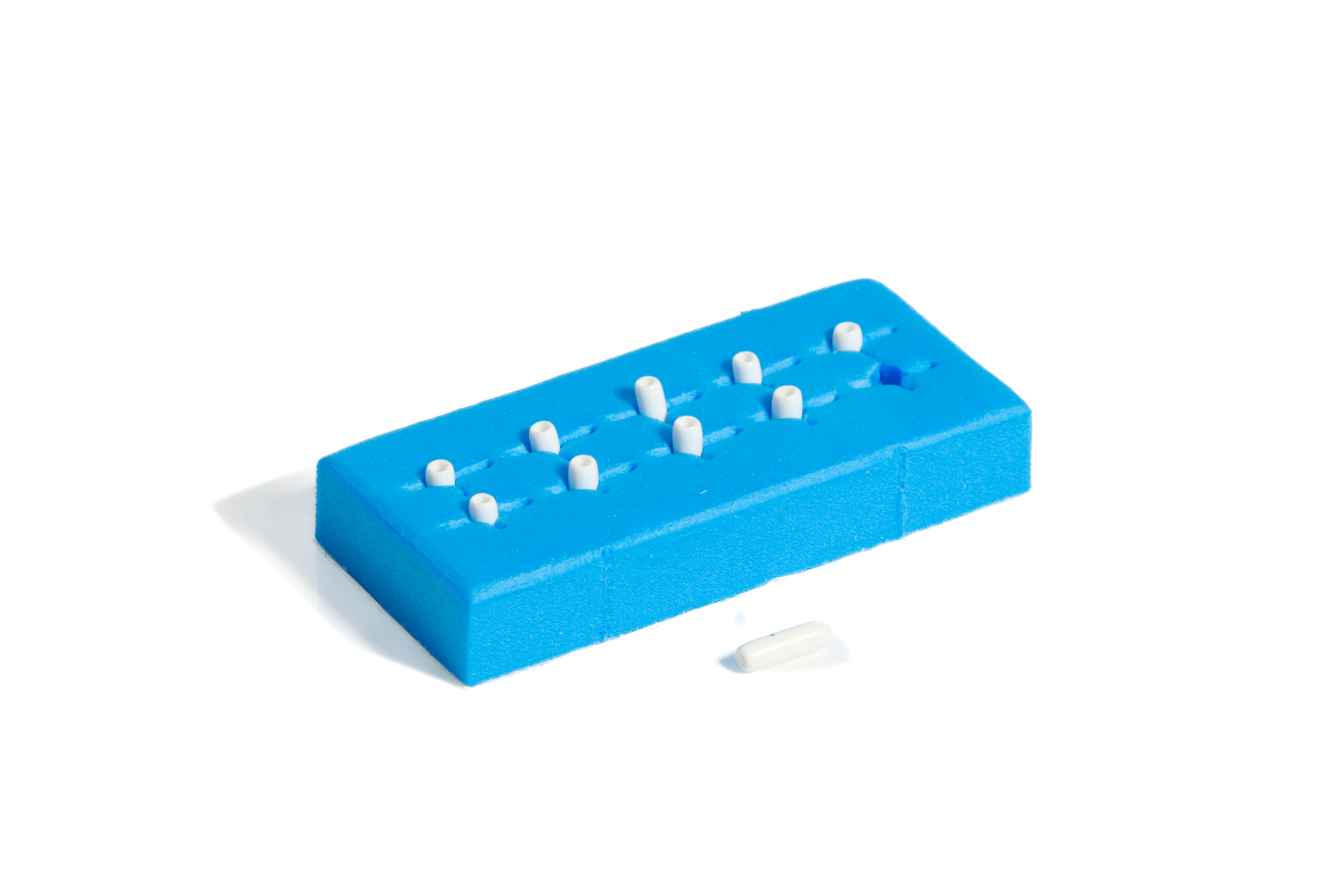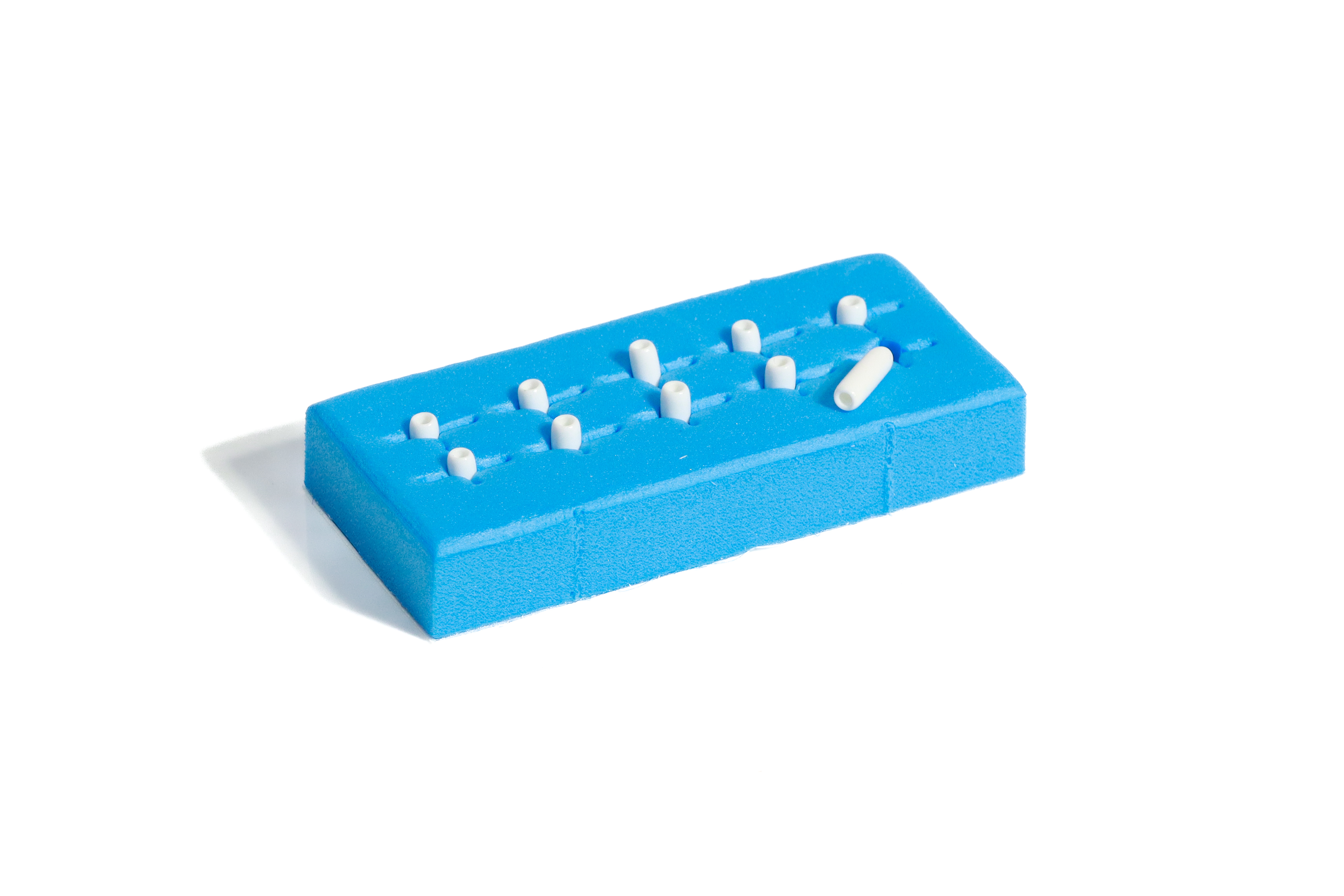 Schaumstoffblock mit selbstklebender Rückseite untergebracht. Sie sind in